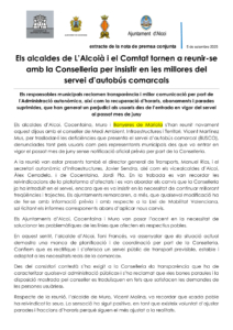 A fecha de hoy, el Ayuntamiento todavía no ha recibido respuesta oficial por parte de la Consellería sobre las reclamaciones hechas, por las modificaciones negativas en la línea de autobús Banyeres de Mariola-Alcoi.