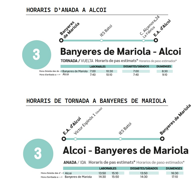 HORARIOS AUTOBÚS LÍNEA BANYERES-ALCOI 2025
